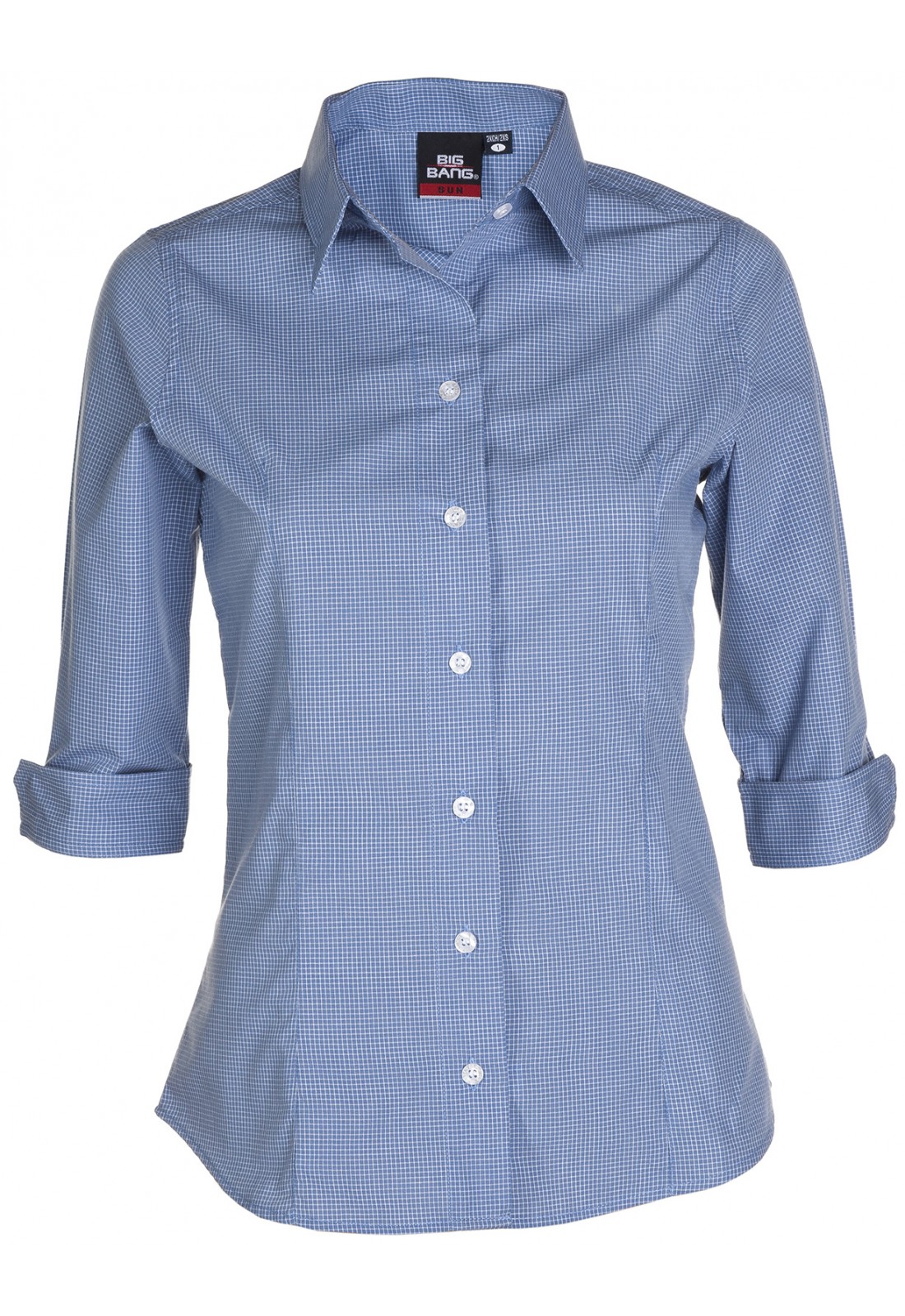 Blusa marca Big Bang manga corta y larga modelo Sun. Tela popelina composición 60% algodón 40% poliéster. Apariencia micro cuadros. Esta tela es cómoda, ligera y fresca al ser una tela con un grosor de 3.6 onzas.
