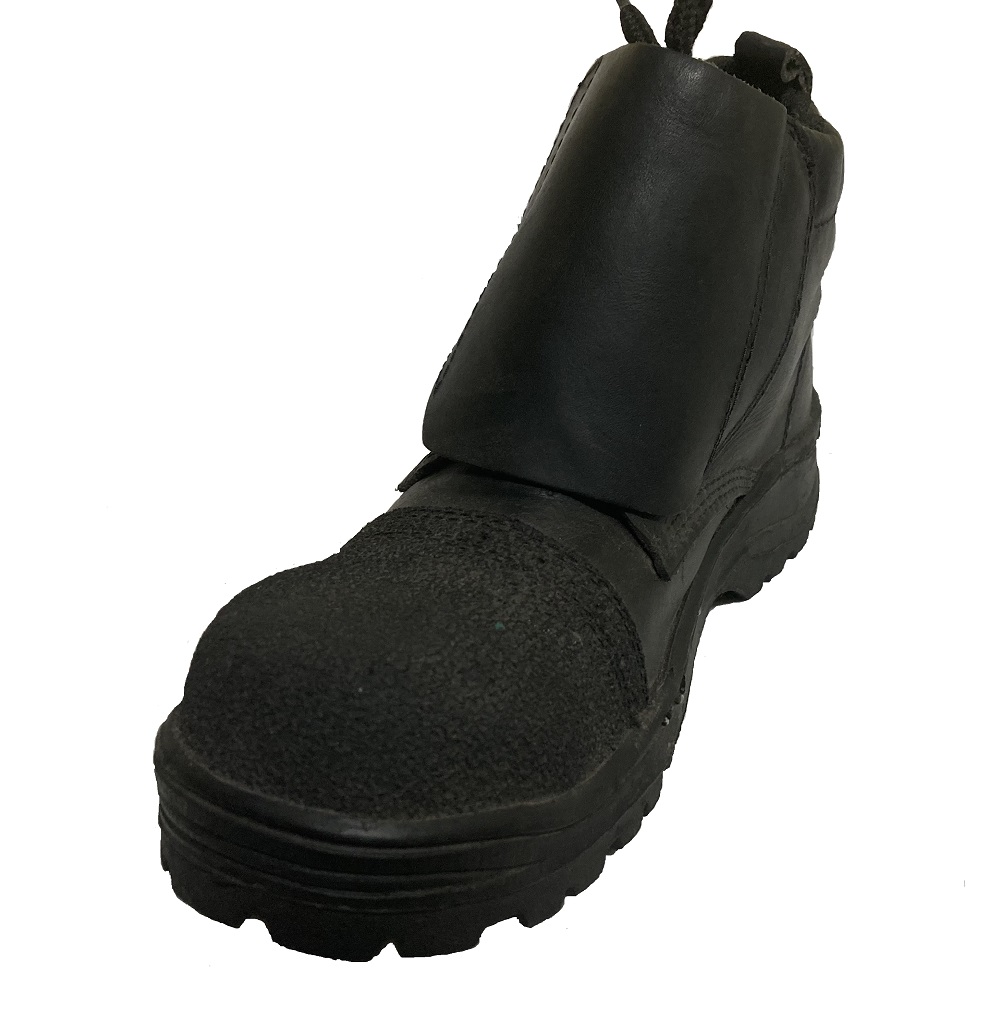 Borceguí industrial con protección en área de agujeta. Confeccionada con una Solapa o protector de chispa en área de agujetas ideal para trabajos de soldadura o donde haya chispa de cualquier tipo, pero se requiera a través de las agujetas para un ajuste .
