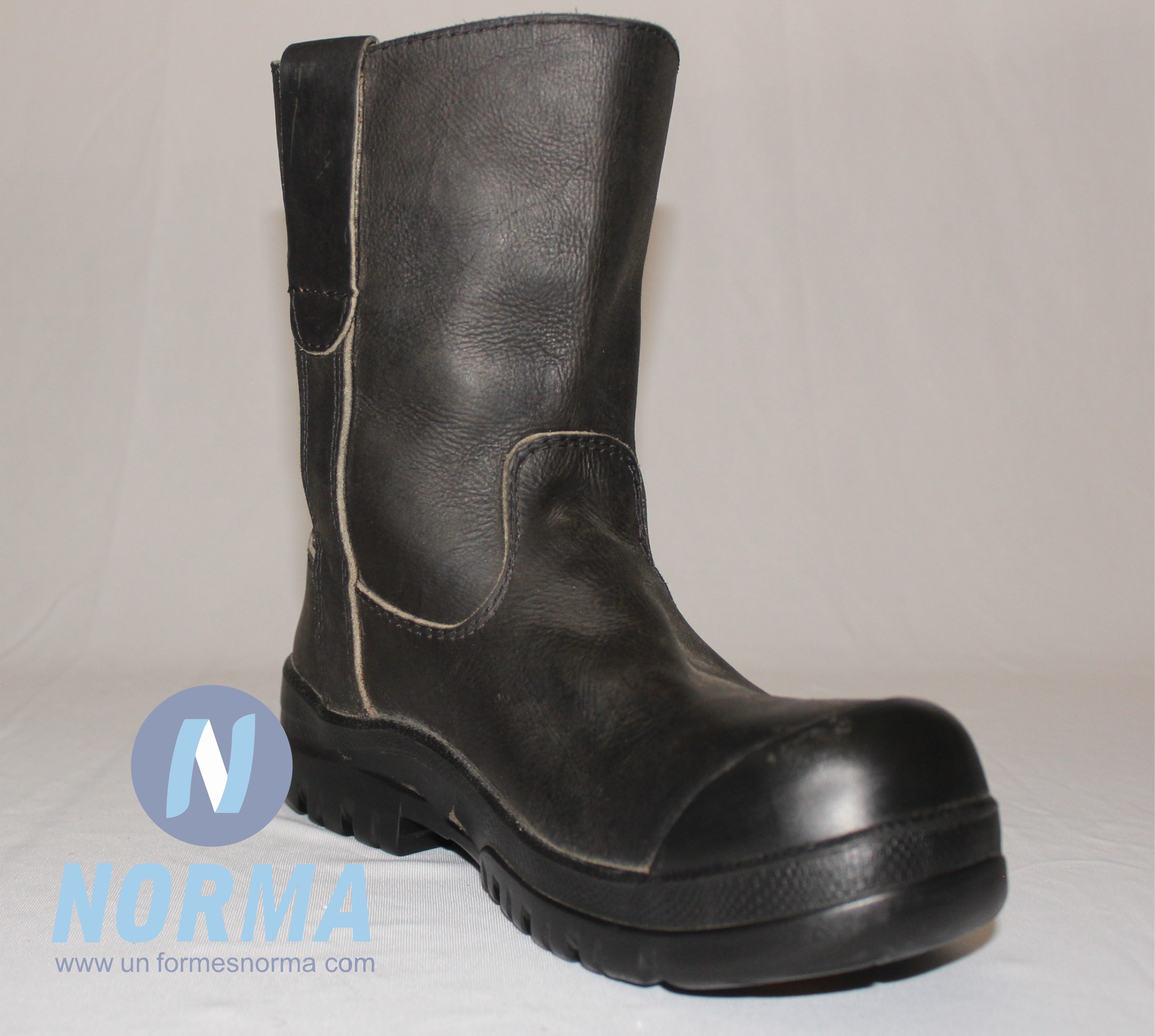 Bota industrial cerrada sin agujetas. Este borceguí va cerrado totalmente lo que ofrece un mejor aislamiento del pie contra líquidos, polvos, arenas y lodos.