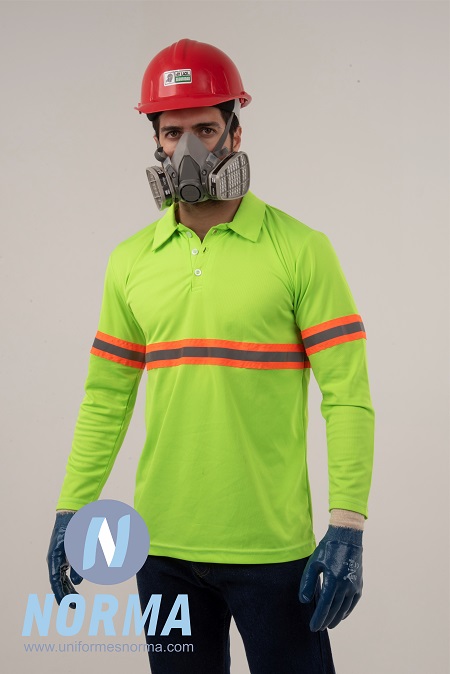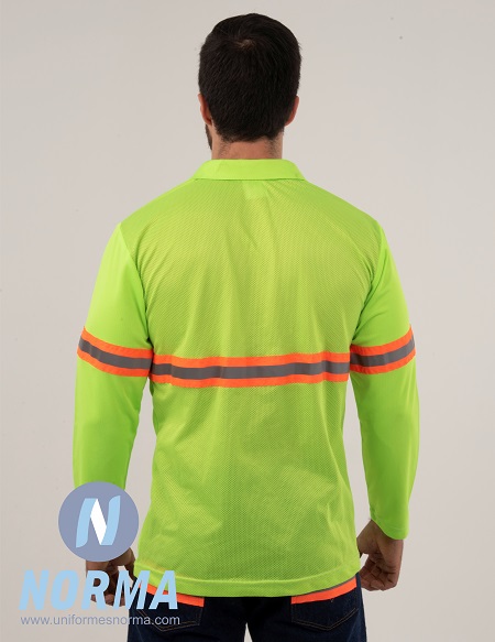 Este modelo tiene reflejantes en color naranja-plata de 2” con la finalidad de tener contraste de colores y el usuario sea altamente visible en el día y con el reflejante plata al centro para ser visible por las noches.