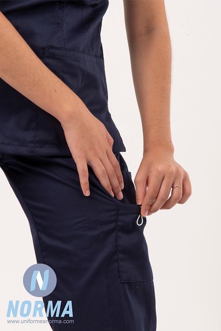 Conjunto para dama cuello V cruzado. Blusa manga corta con terminación en cuello V cruzado. A siluetada sin pinzas para un mayor confort. Resalta su corte horizontal en abdomen. Dos bolsas dobles al frente de fácil acceso. Apertura en cintura a cada costado. Pantalón con elástico y jareta para un mejor ajuste, lleva una bolsa lateral y una trasera.