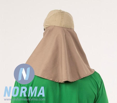 Gorra con capa en la nuca tipo legionaria. Confeccionada en gabardina para una mayor frescura y aislamiento al calor, resistencia al desgarre u objetos punzo cortantes. Se confecciona con una capa en la parte trasera para proteger al usuario del sol en su nuca. Su ala ancha al frente protege la cara y orejas del sol. Cordón con barbiquejo y ajuste a la cabeza. Malla en la parte superior para poder transpirar.